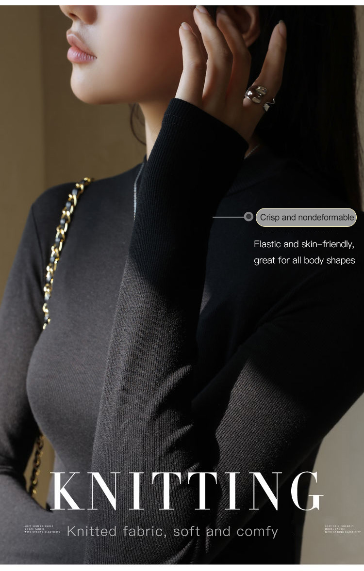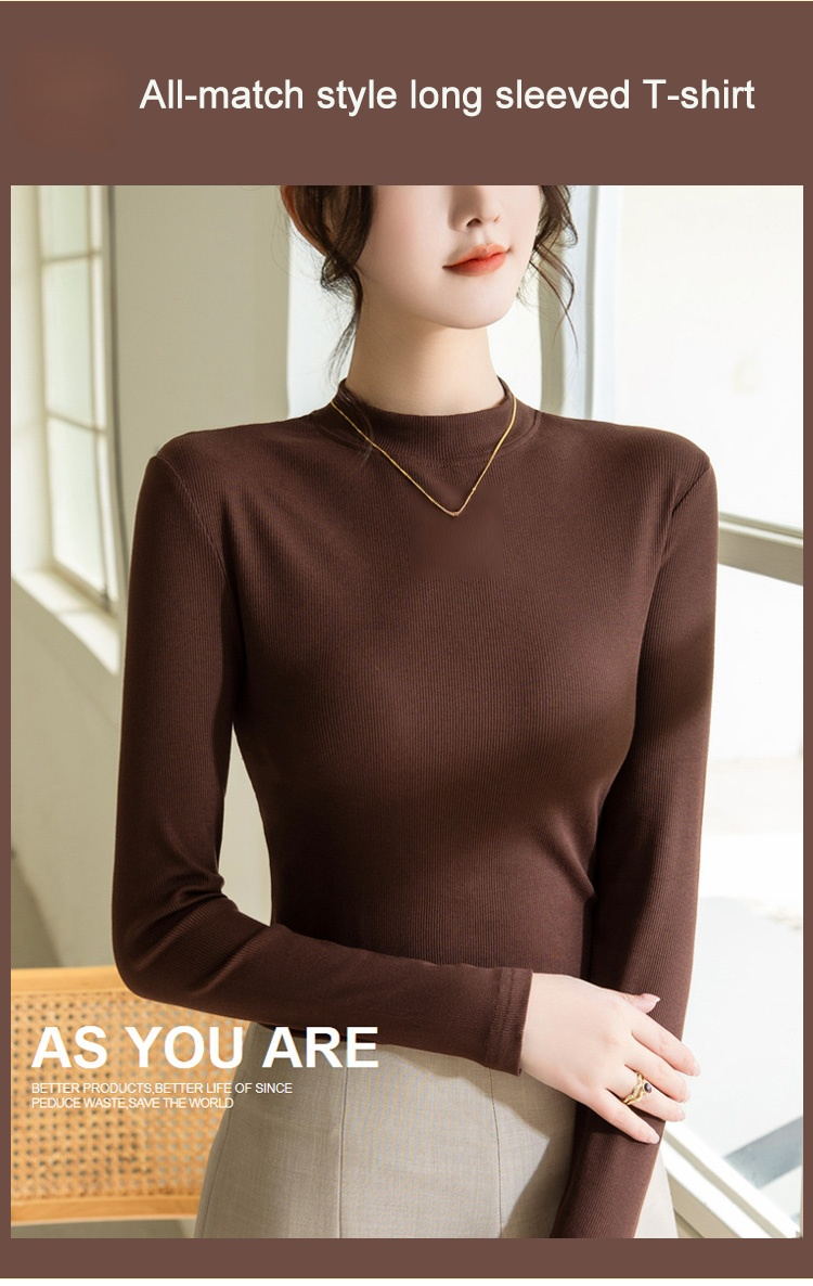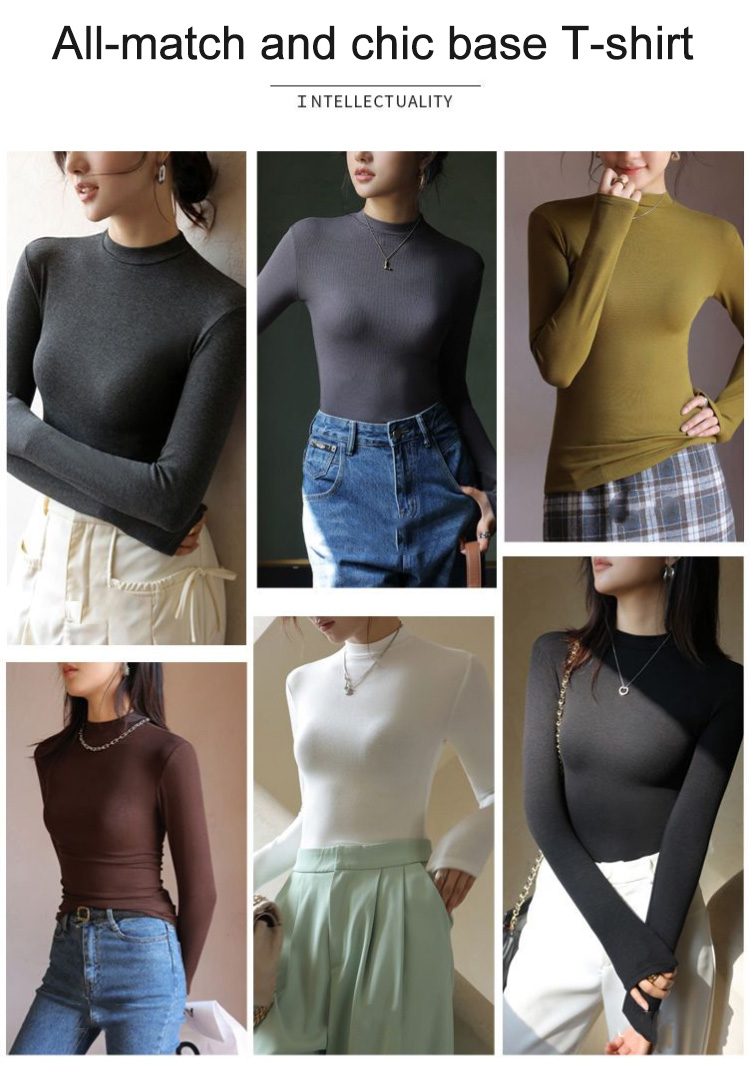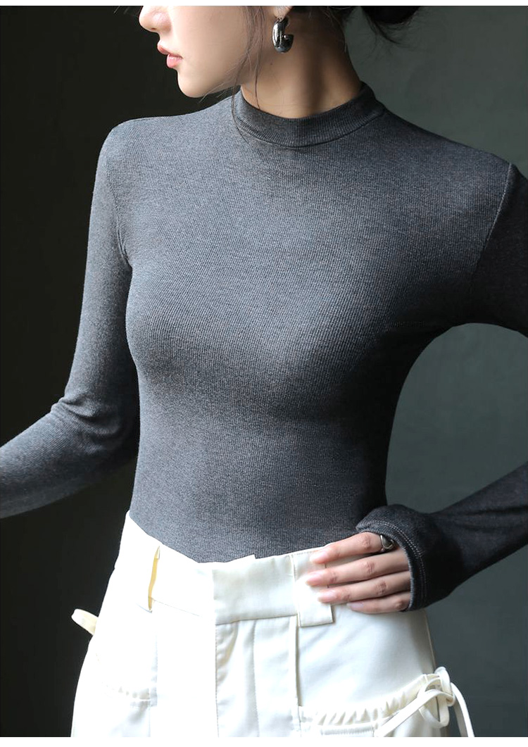 Korea Hot Sale Model Semi-high collar threaded versatile bottom shirt